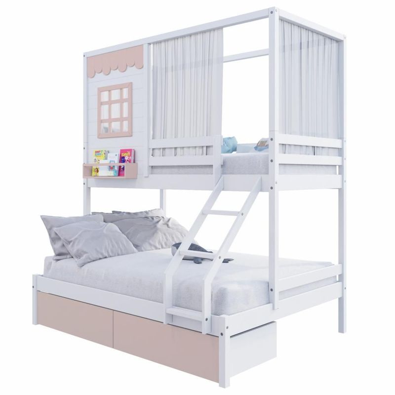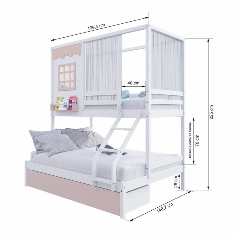 Material Principal: Madeira Maciça | Cor: Branco/ Rosa | Necessita Montagem: Sim | Acompanha Colchão: Não | Tipo de Cama: Beliche Casal/ Solteiro