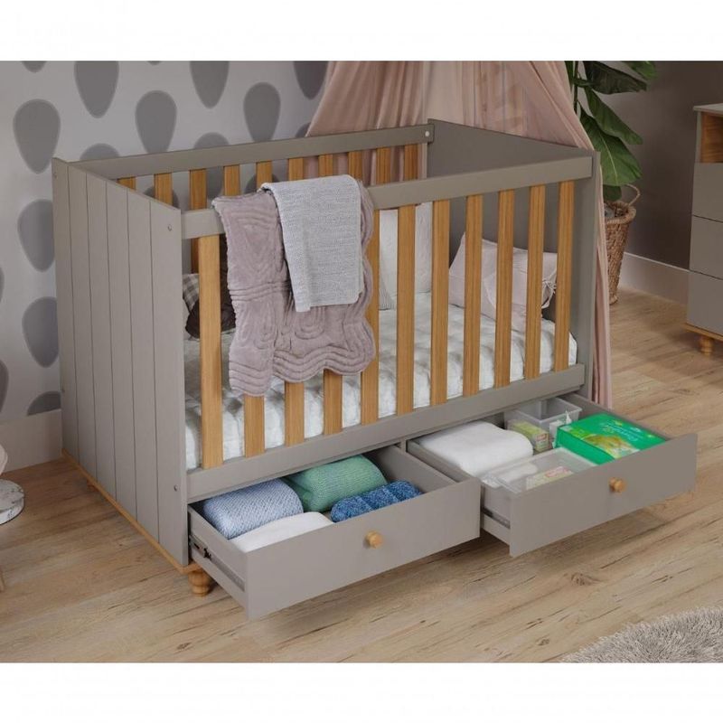 Berço 2 Gavetas Grade Fixa 100% MDF Candy Permobili Fendi/Nature