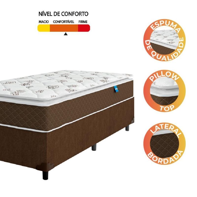MóveisQuartoCamas, Bicamas e BelichesCama Box Solteiro Colchão Molas Ensacadas Pillow 88x188x63cm Marrom/branco Umaflex - Suporta 120kg