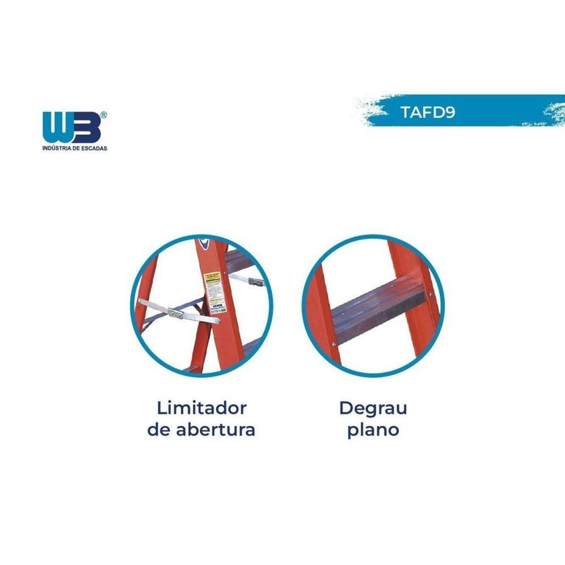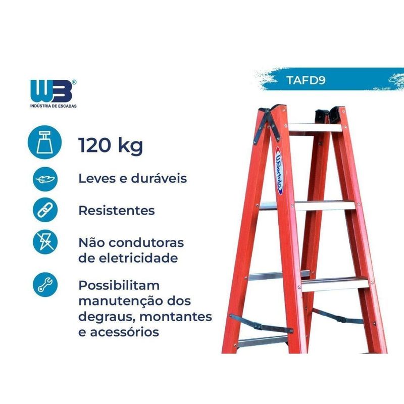 Escada Tesoura Dupla Em Fibra 9 Degraus 2,70 Metros Wbertolo