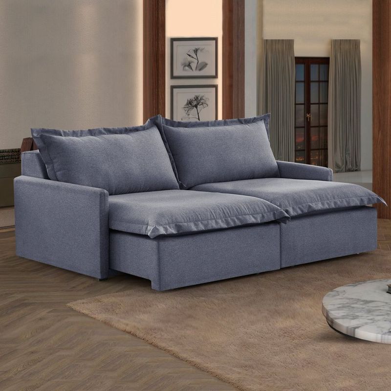 Sofá 2 Lugares Retrátil 200cm com Almofadas M145 Linho/Cinza Escuro