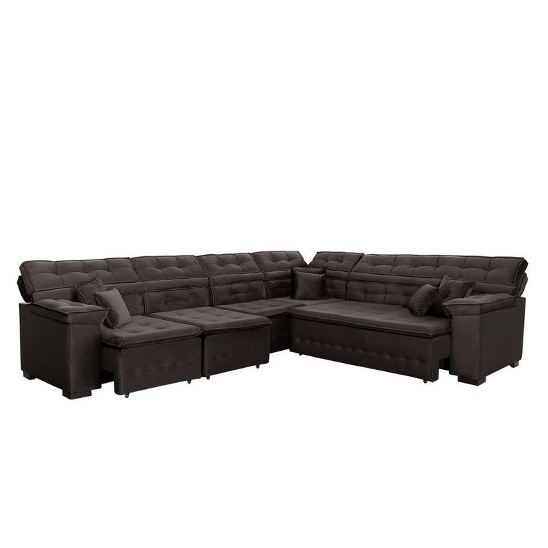 Sofá Magno 3.32x2.57m De Canto, Retrátil E Reclinável - Marrom