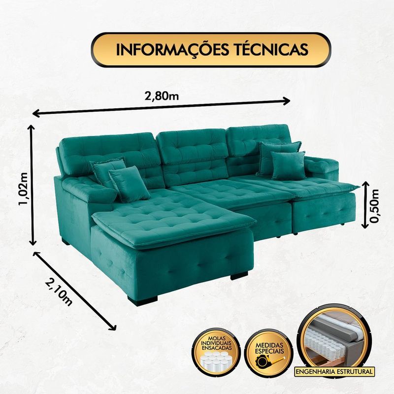 Sofá Orlando Retrátil, Reclinável e Chaise 2.80x2,10m – Sofisticato